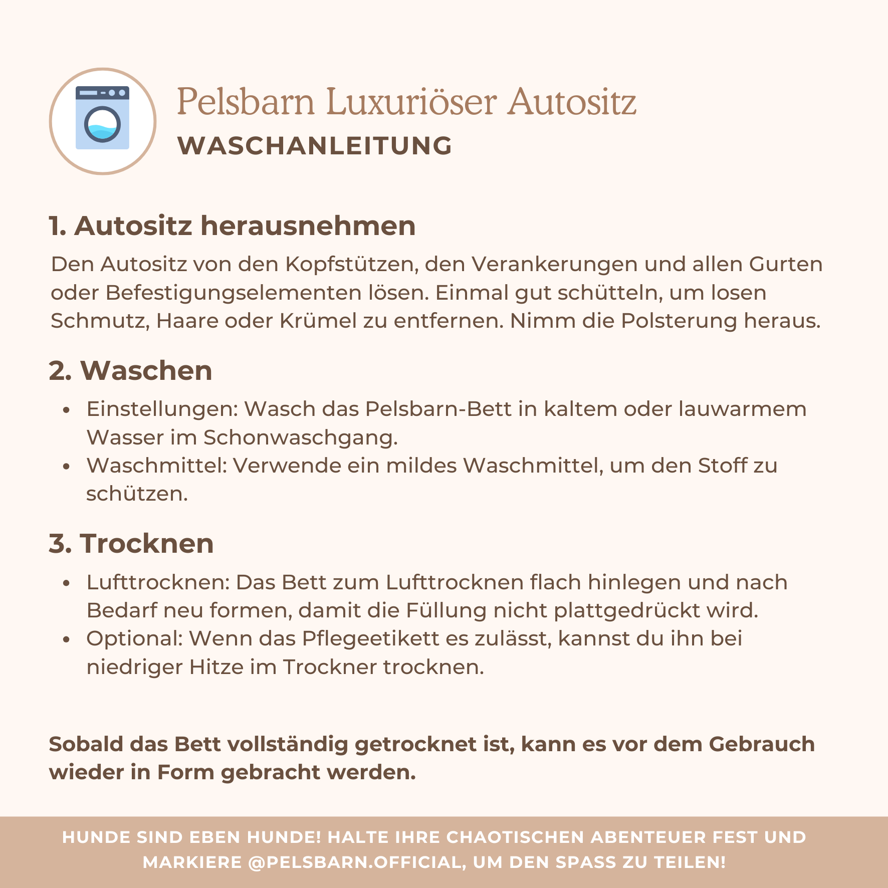 Luxuriöser Autositz PflegeAktualisiert 2 months agoHier ist die Waschanleitung für dein Pelsbarn Bett und wie du es wieder in Form bringst. War dieser Artikel hilfreich? JaNein