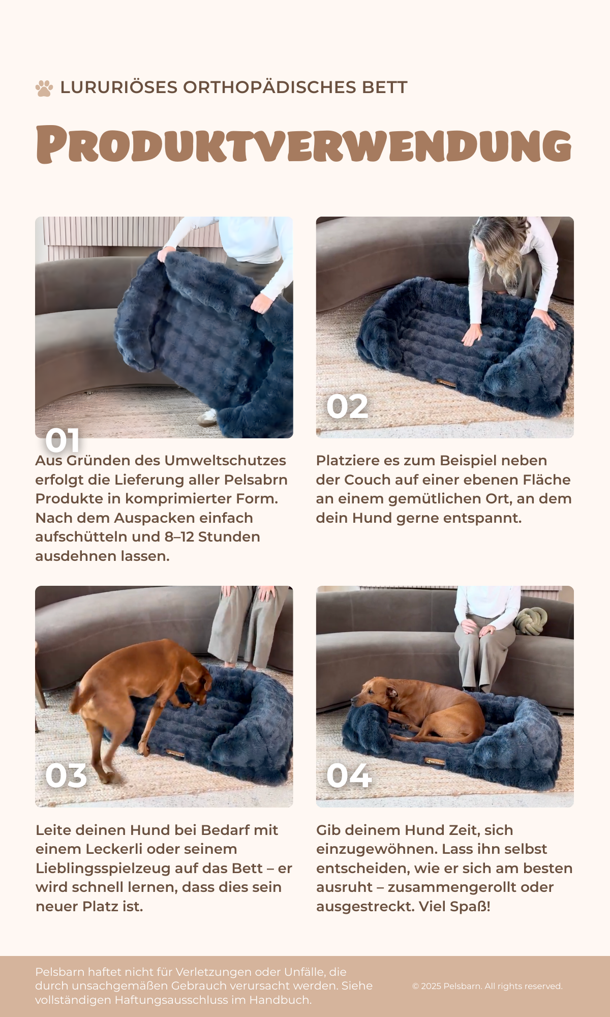 Luxuriöses Orthopädisches Beruhigungsbett InstallationAktualisiert 2 months agoHier ist eine kurze Anleitung, wie du das Luxuriöse Orthopädische Beruhigungsbett in deinem Zuhause nutzen kannst. War dieser Artikel hilfreich? JaNein